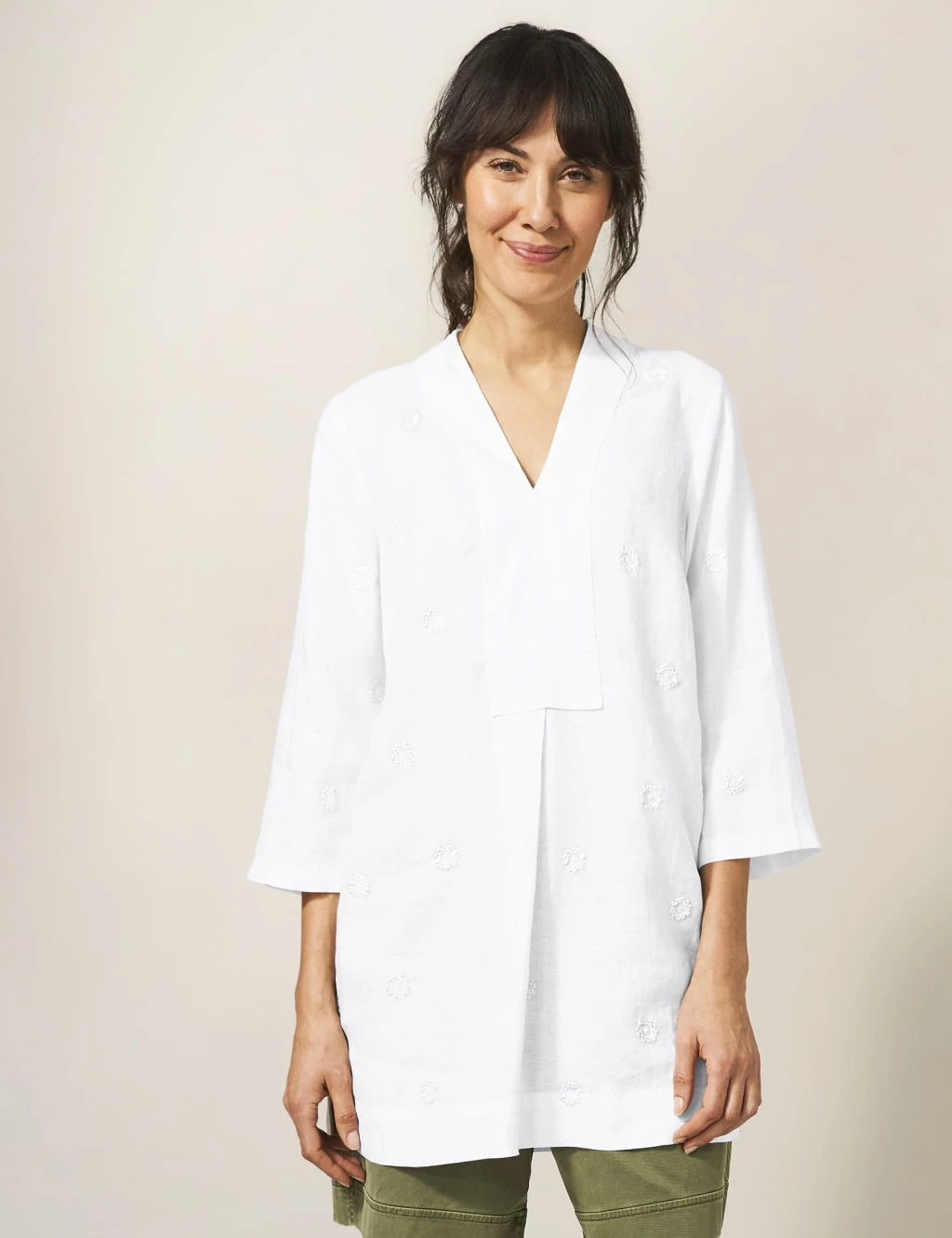 WHITE STUFF Pure Linen Floral Embroidered Tunic