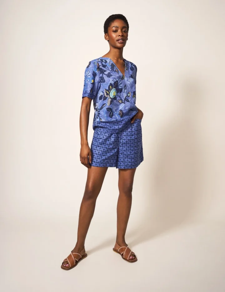 Crafted from breathable pure linen, these breezy shorts from White Stuff are a chic addition to sunny off-duty outfits. They’re designed in a classic regular fit with a mid-rise waist. Tailored pleats give the feminine style subtle volume through the leg. They’re finished with a contemporary print, neat pockets and a lining for comfort.