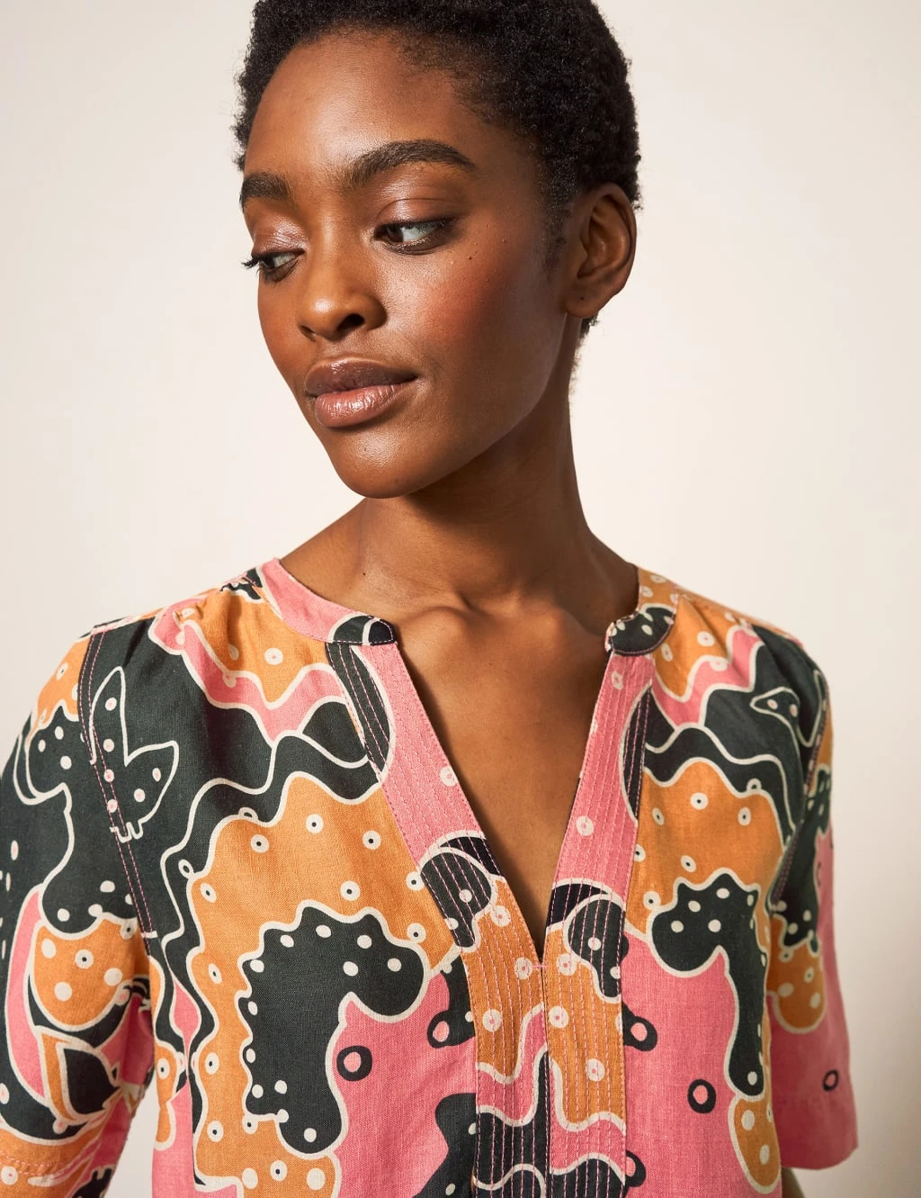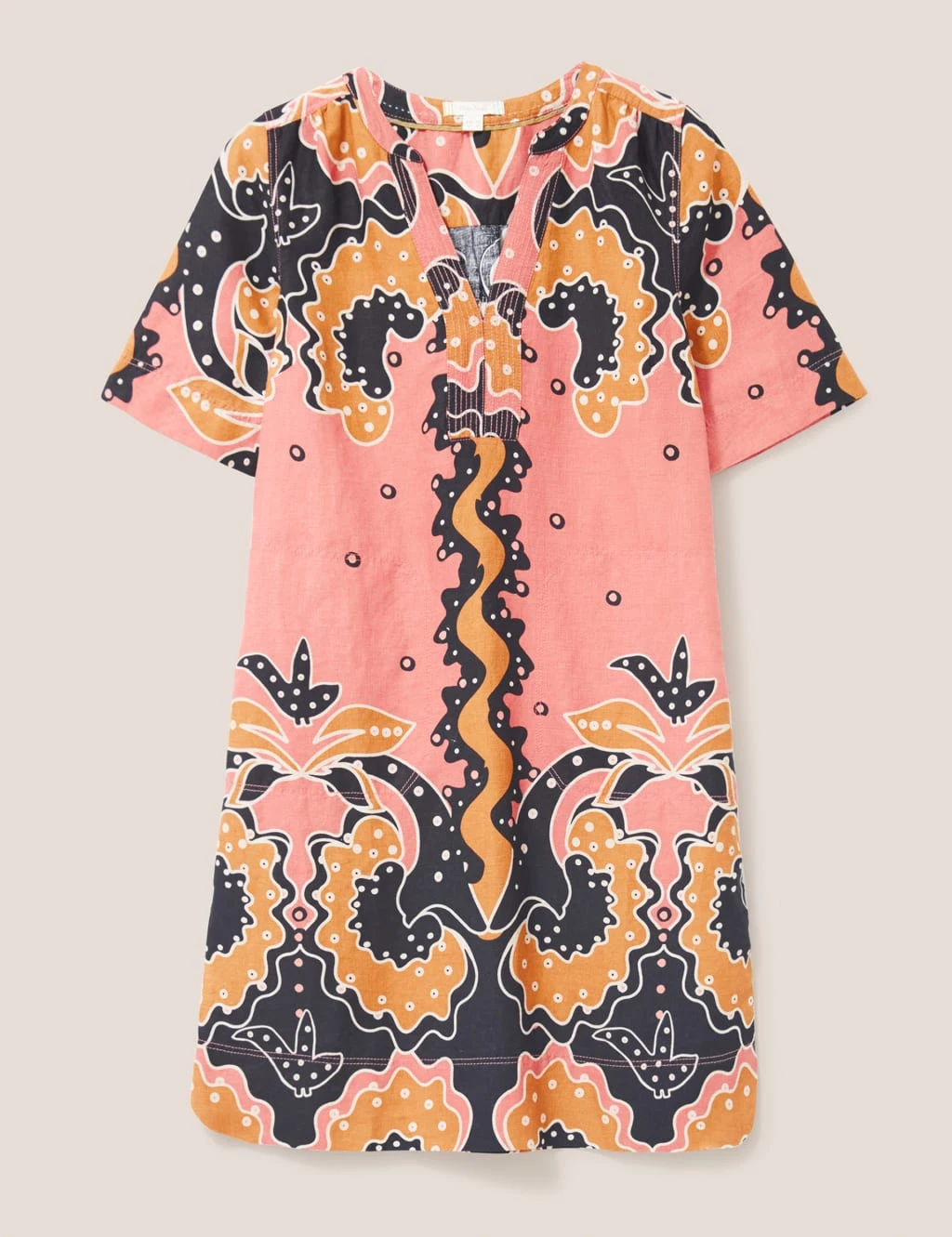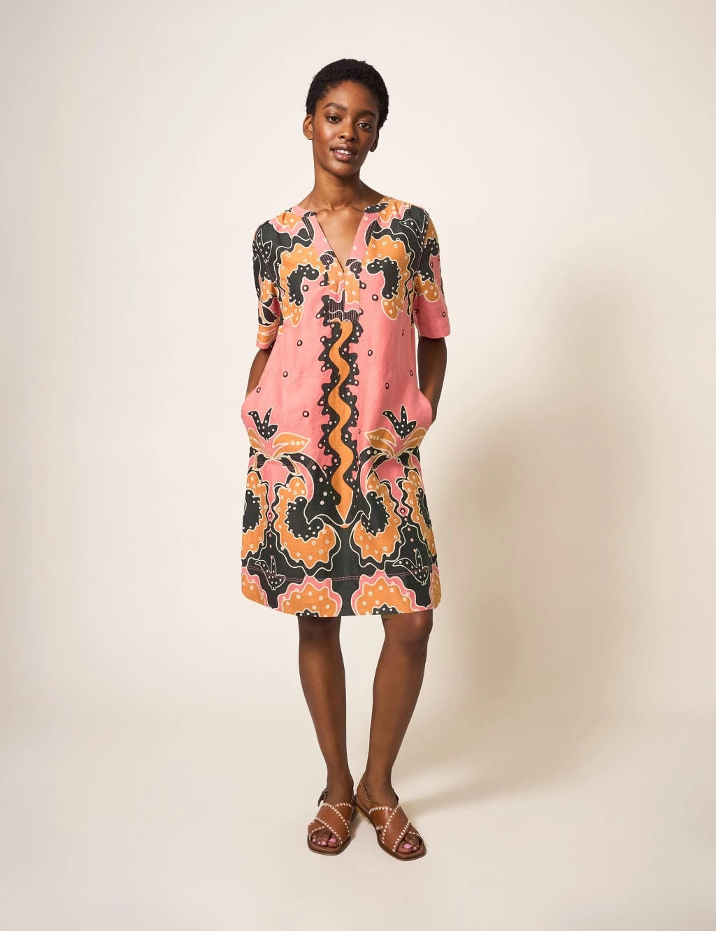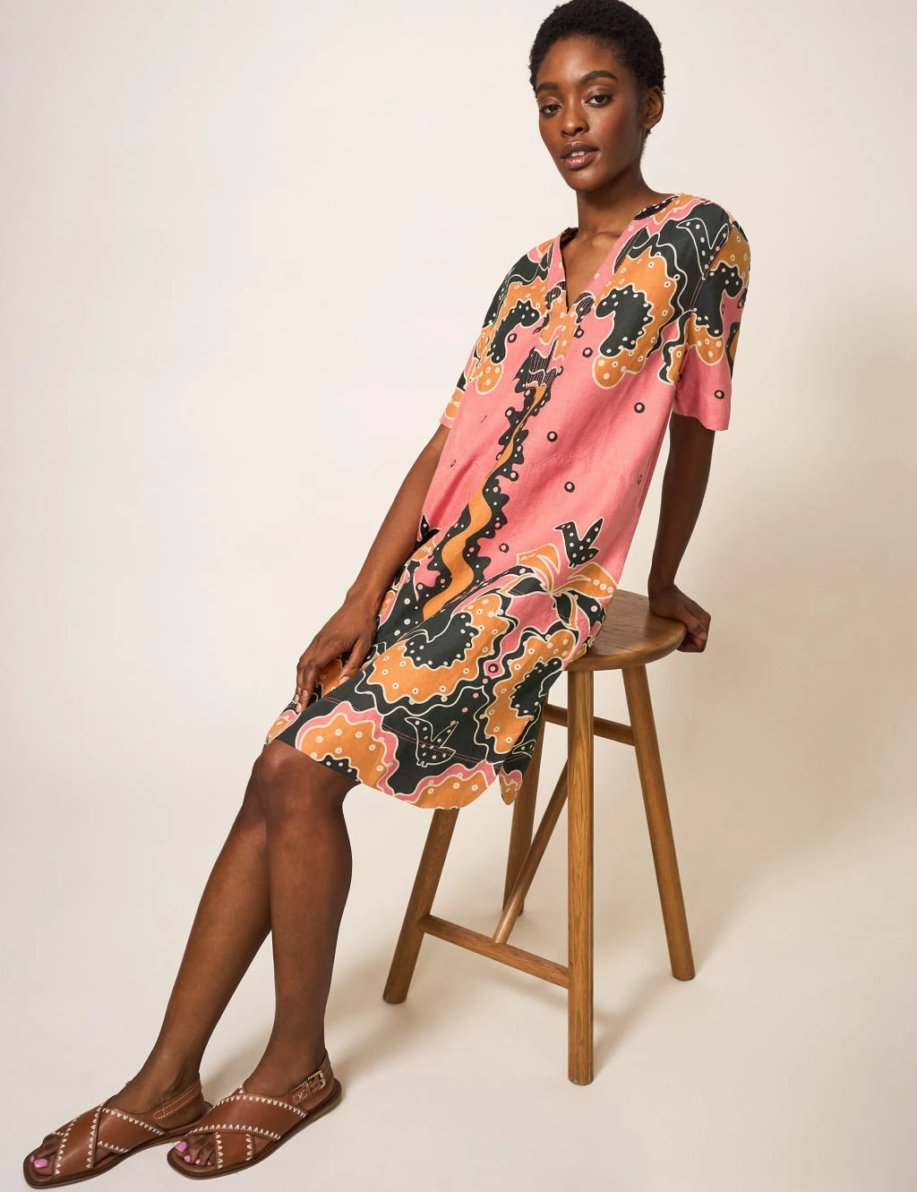 WHITE STUFF Pure Linen Printed V-Neck Shift Dress