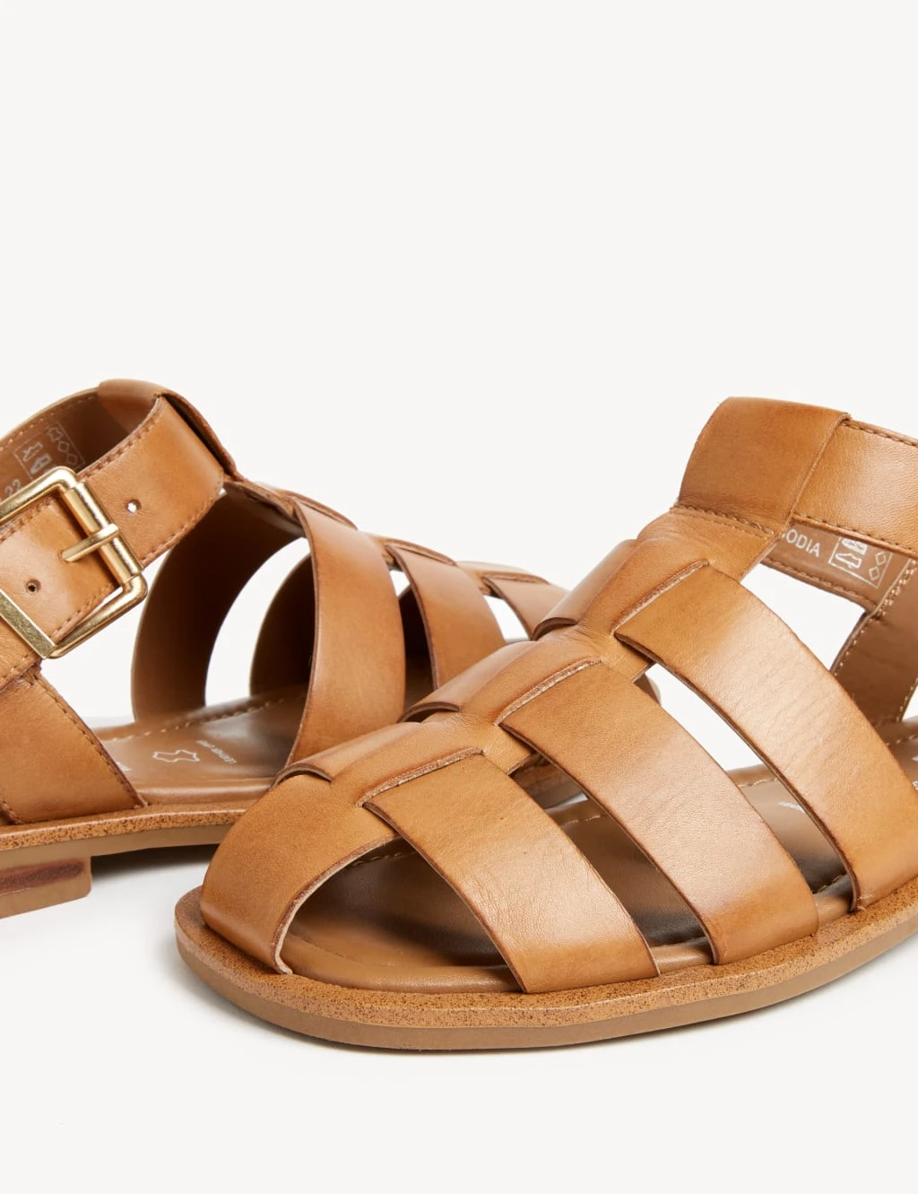 On laid-back warm days, reach for these leather sandals. Made in a comfy wide fit with a flat heel and an ankle strap fastening. Interwoven fisherman-style design features a closed toe for a classic look. Antibacterial padding provides an all-day fresh feeling.
