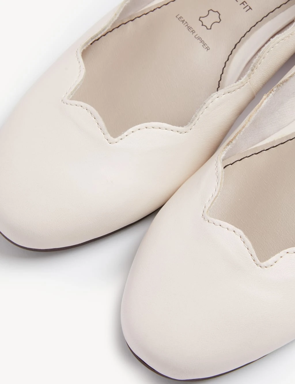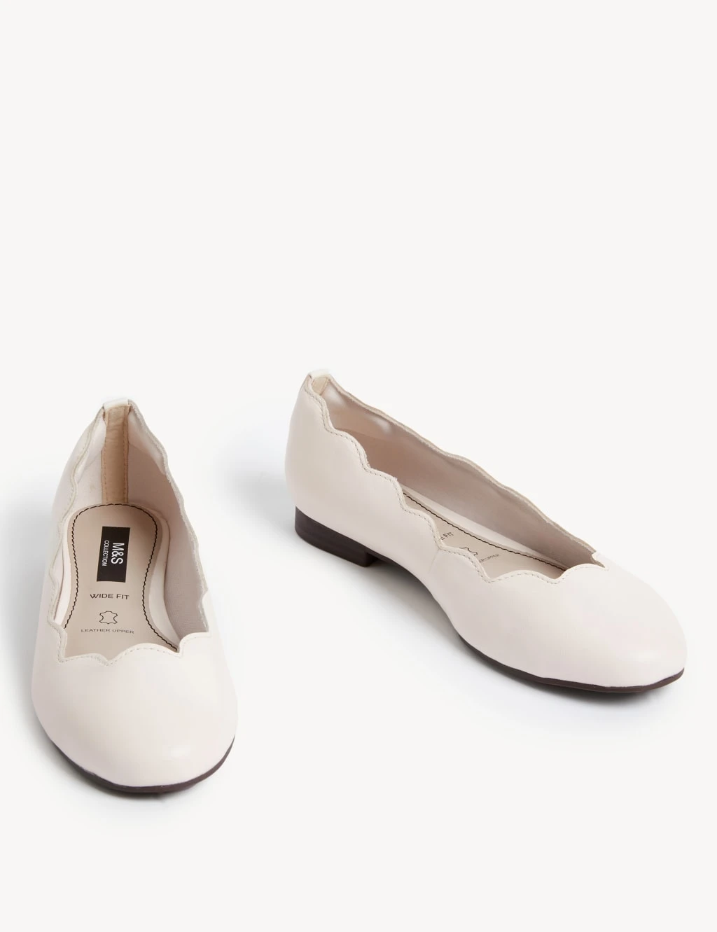 The scalloped edge of our ballerina shoes creates a touch of pretty detailing. Wide fit, for extra comfort. Almond toe shape. Insolia Flex® technology ensures correct placement of your foot within your shoe, making walking in flats more comfortable. Crafted from leather.