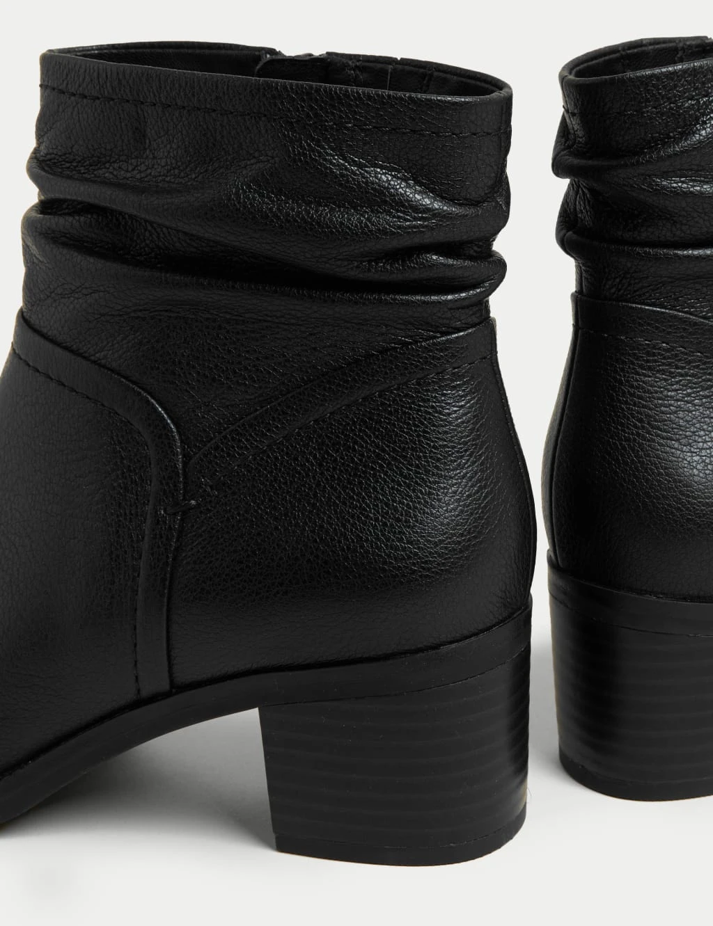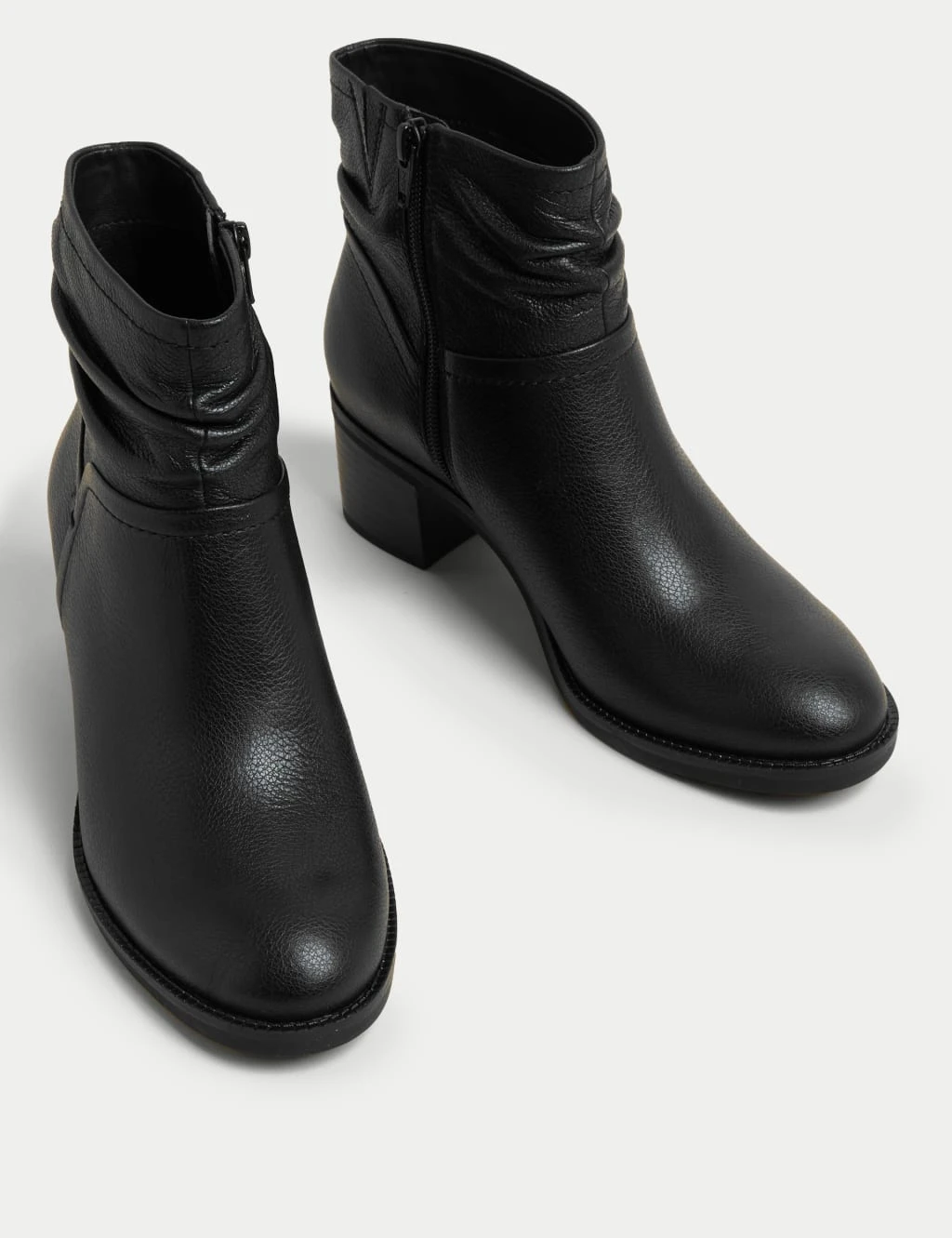 Blend style and comfort in these buttery soft ruched leather ankle boots. They come in a comfy wide fit, with a mid-height block heel and a practical zip fastening that makes them easy to pull on. Innovative Insolia® technology redistributes your weight, reducing pressure on the balls of your feet. Antibacterial padding inside the boots helps to keep them fresh. Made with responsibly sourced leather.