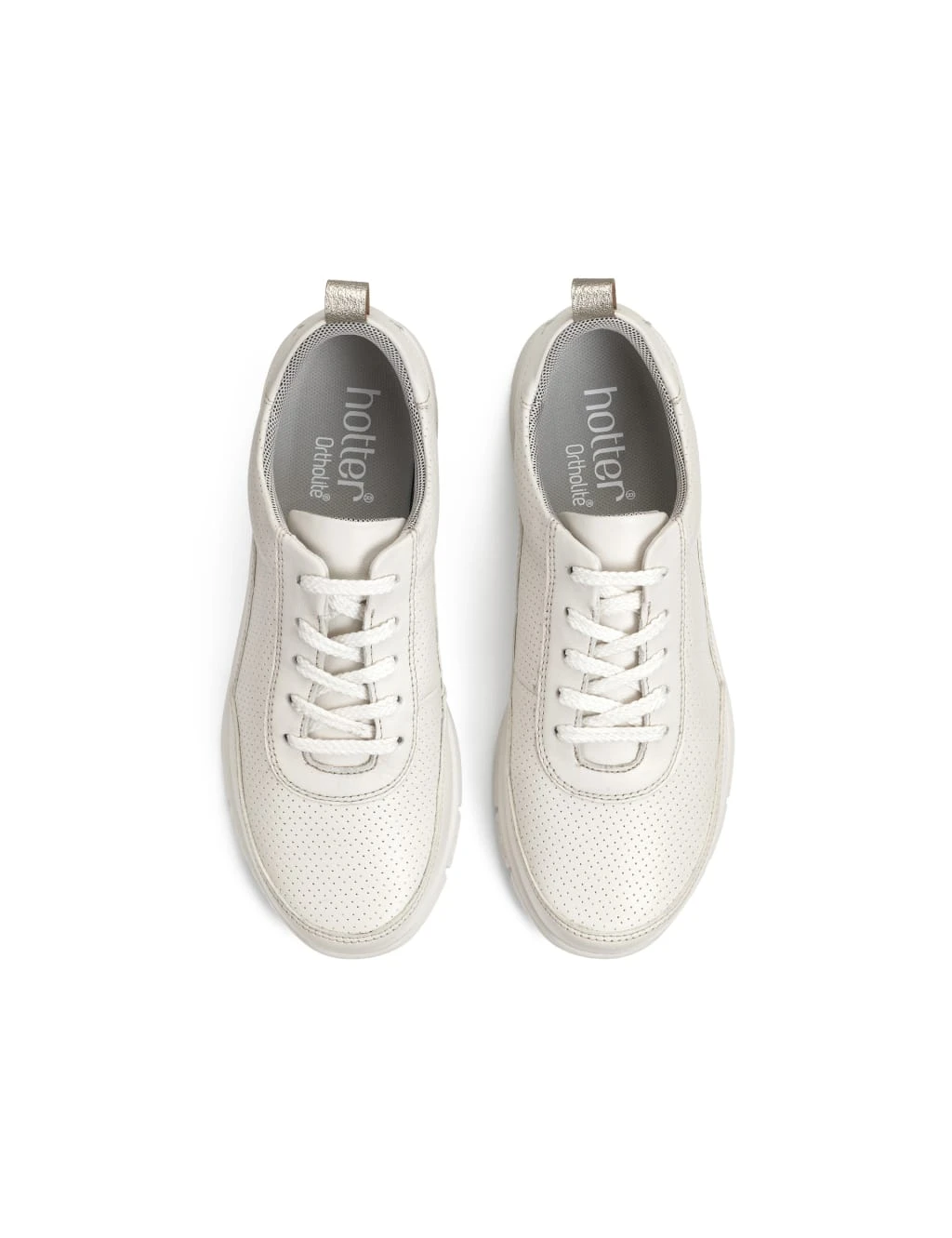 Take on active days with the comfort-enhancing trainers by Hotter. They’re specially designed for wider feet and come with a classic lace-up design. Ultra-light Cushion+ technology returns up to 45% of your energy with every step, reducing fatigue and making hard terrain feel soft. The leather upper is perforated for breathability, while suede and croc print panels add extra style points.