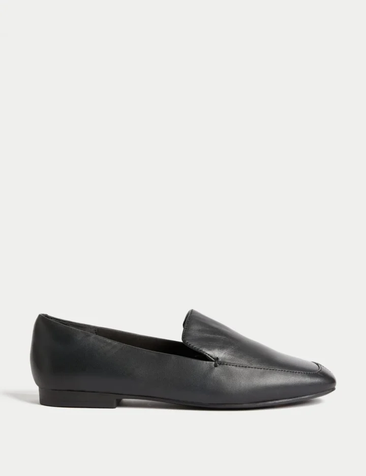 Wide Fit Leather Square Toe Flat Loafers