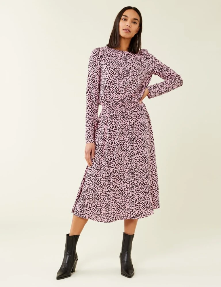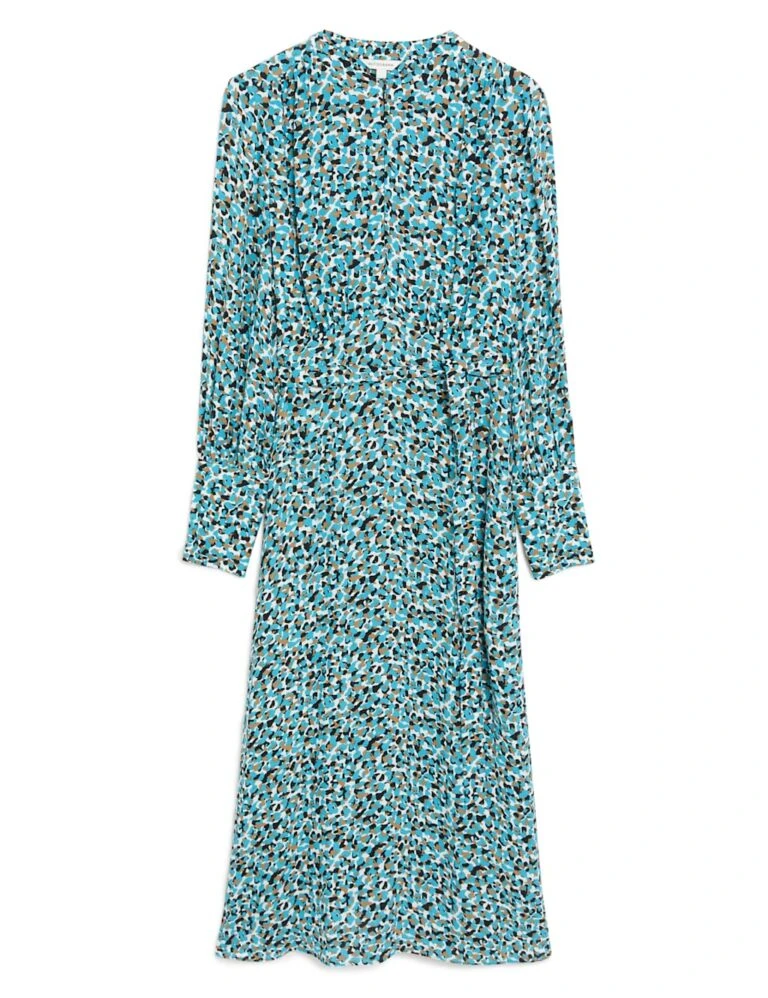 Animal Print V-Neck Midi Wrap Shirt Dress