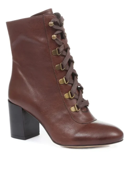 Jones Bootmaker Leather Lace-Up Block Heel Ankle Boots