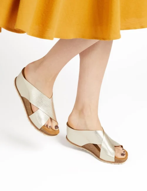 Jones Bootmaker Leather Metallic Wedge Sandals