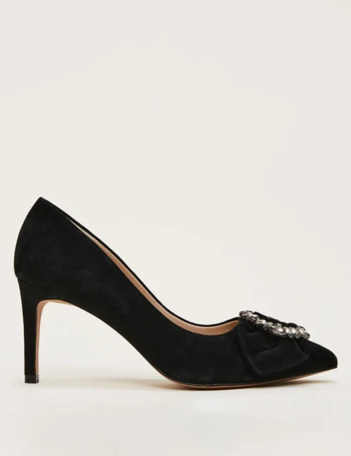 Suede Bow Stiletto Heel Court Shoes