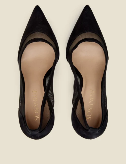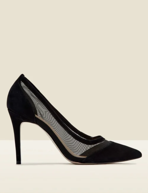 Suede Mesh Detail Stiletto Heel Court Shoes