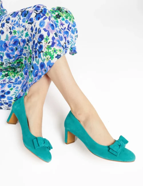 Jones Bootmaker Suede Bow Block Heel Court Shoes