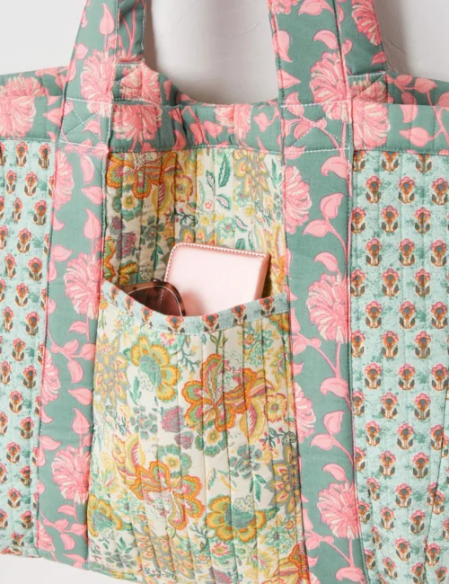 Cotton Rich Floral Quilted Tote Bag