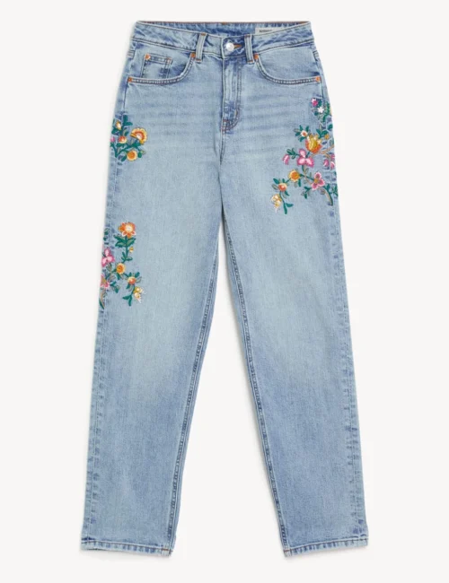 Boyfriend Embroidered Ankle Grazer Jeans
