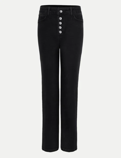 Button Front Straight Leg Jeans