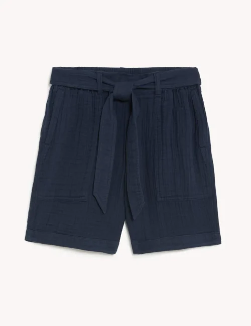 Pure Cotton High Waisted Belted Shorts