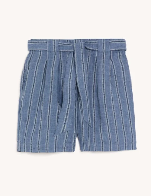 Pure Linen Striped High Waisted Shorts