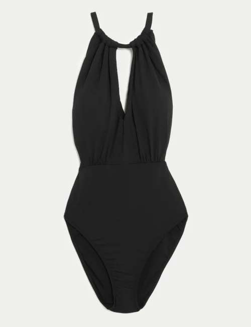 Joules Printed Ruched Plunge Halterneck Swimsuit