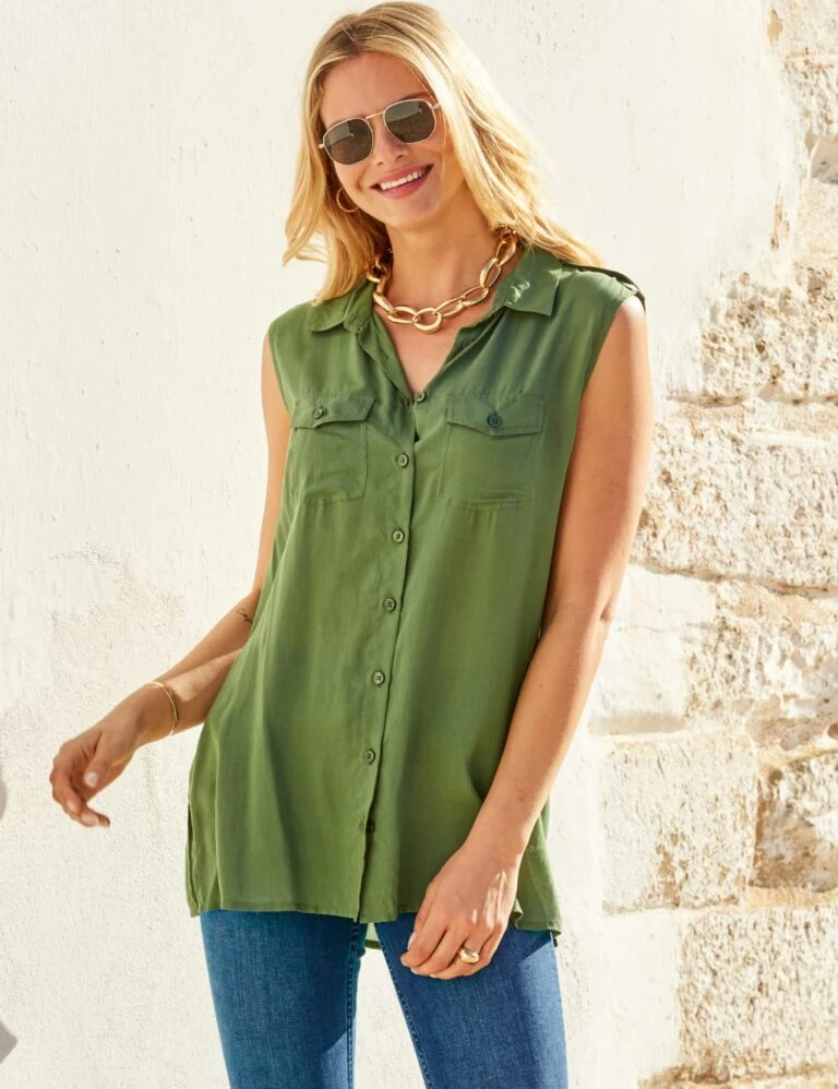 Collared Utility Sleeveless Shirt