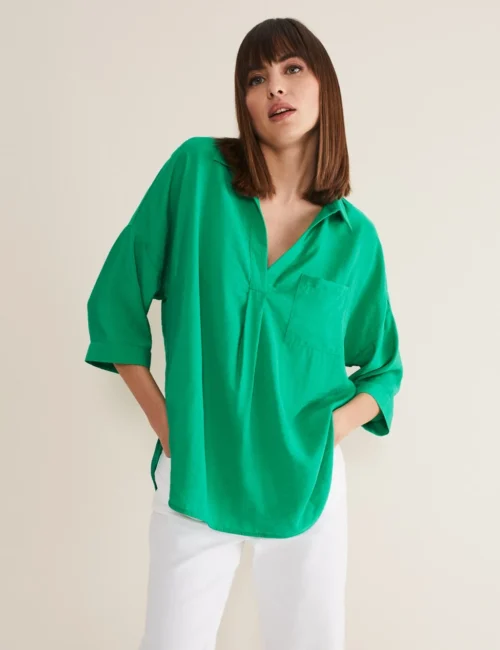 Collared V-Neck Relaxed Longline Shirt