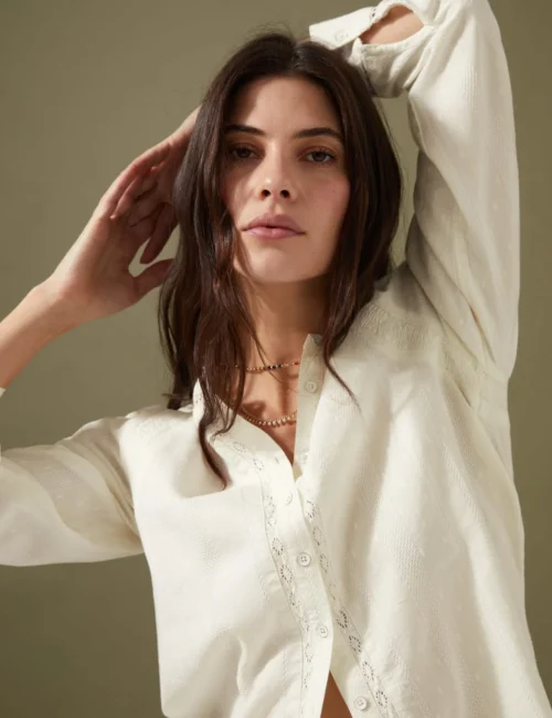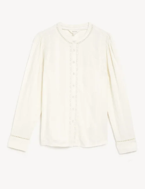 Cotton Blend Textured Lace Insert Blouse