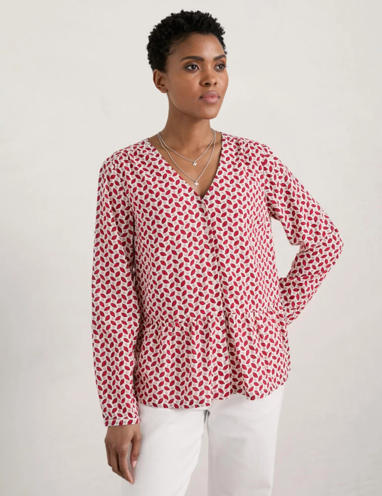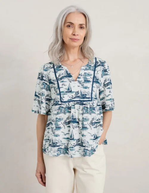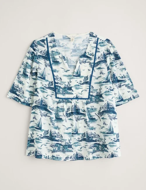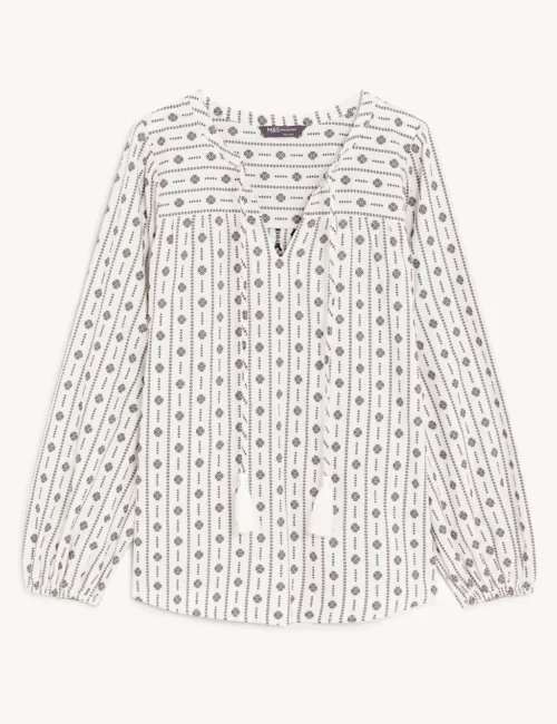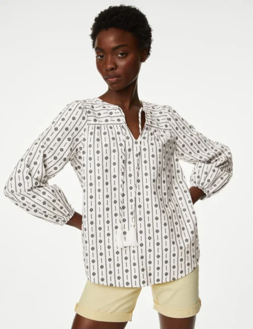 Cotton Rich Embroidered Puff Sleeve Blouse