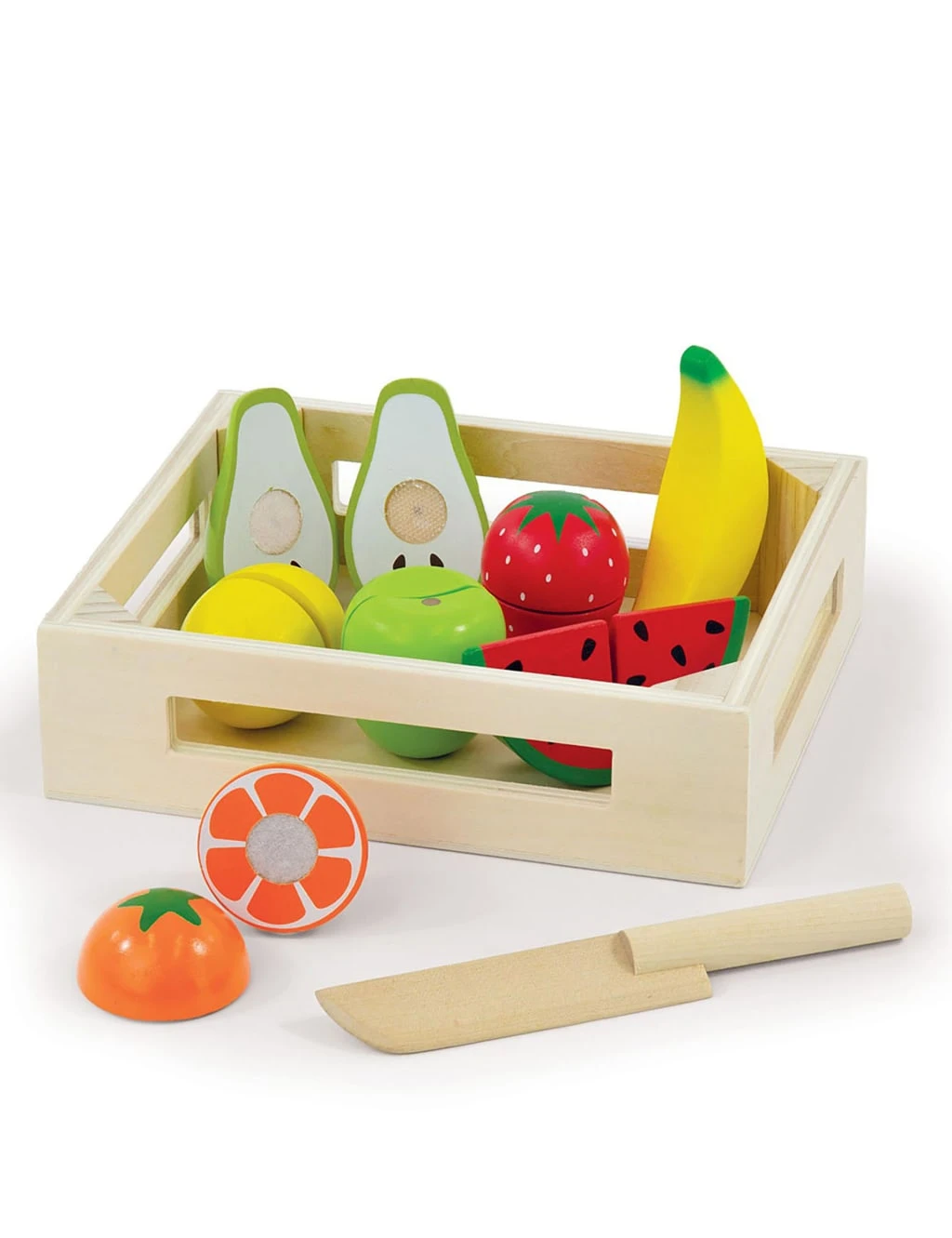 This fruit crate from Early Learning Centre is ideal for pretend play. They will have endless fun using the wood knife to carefully cut up the fruit and serve tasty treats. The set includes an apple, banana, tomato, lemon, pear, strawberry and watermelon. Suitable for children over 3 years.