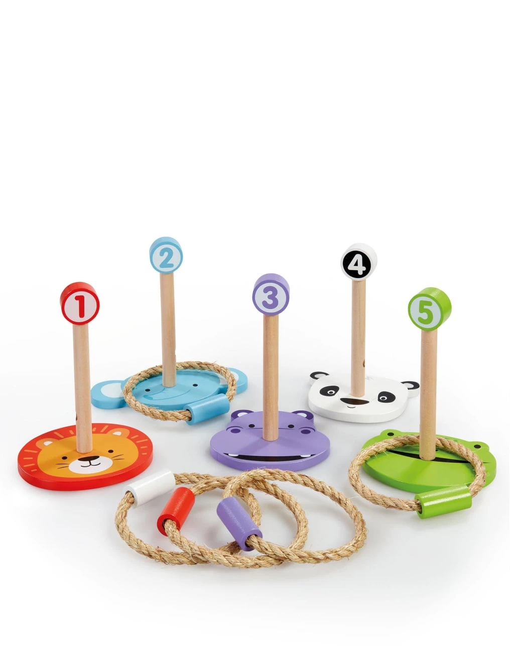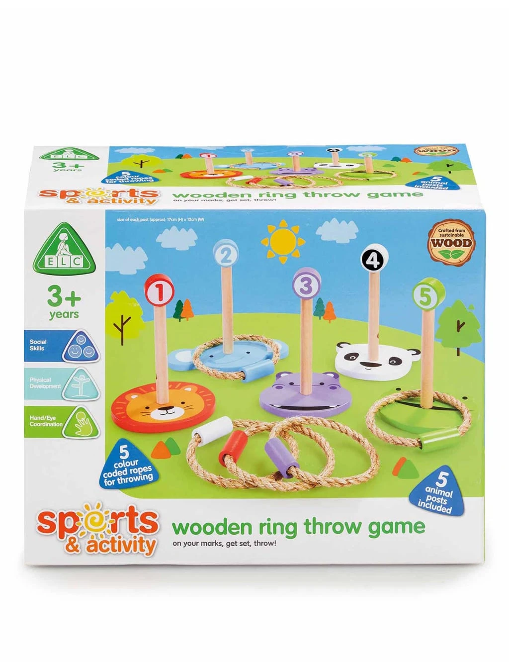 This wooden ring throw set from Early Learning Centre ensures hours of outdoor fun. It includes five animal posts crafted from sustainable wood, plus five colour-coded ropes. This fun game is a brilliant way for children to practise their social and throwing skills, and develop hand-eye coordination. Suitable for children over 3 years.