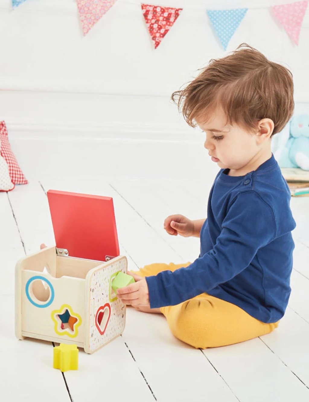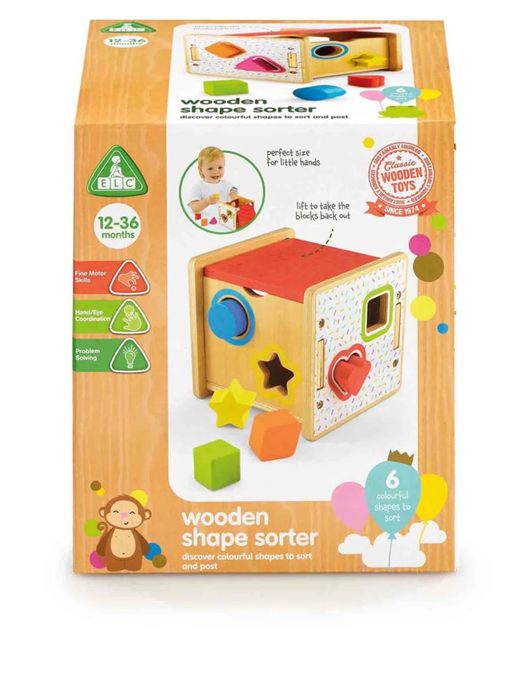 Let them explore different shapes and colours with this classic wooden shape sorter from Early Learning Centre. Your child will have fun trying to work out which of the six blocks fits in each of the holes of the wooden cube, helping to promote their problem-solving and fine motor skills as well as hand-eye coordination. Once they’re done, they can lift the lid on the top, take out the pieces and begin again. Suitable for children 12-36 months.