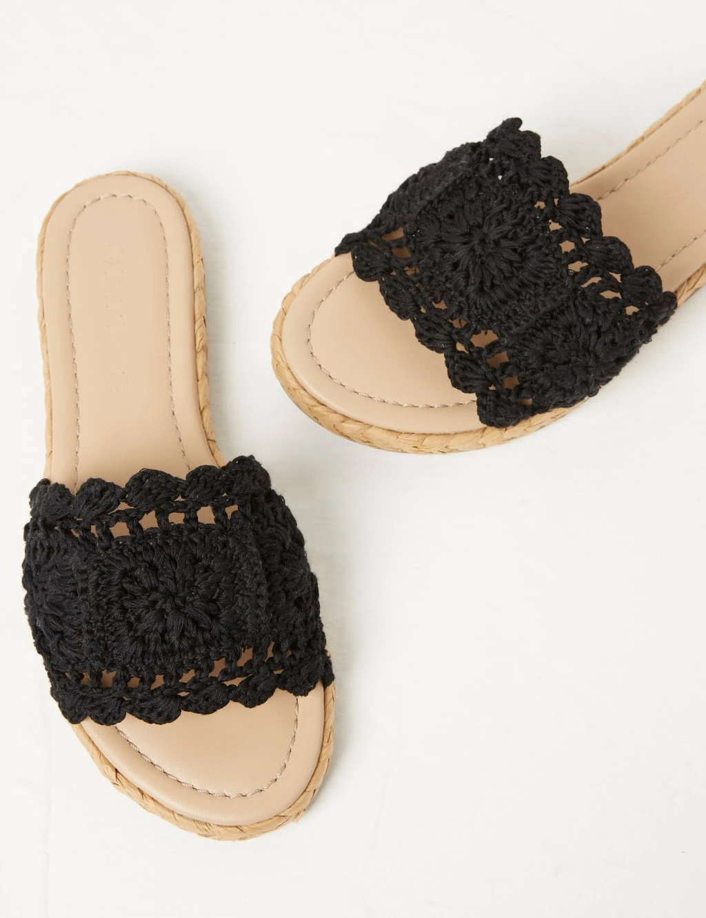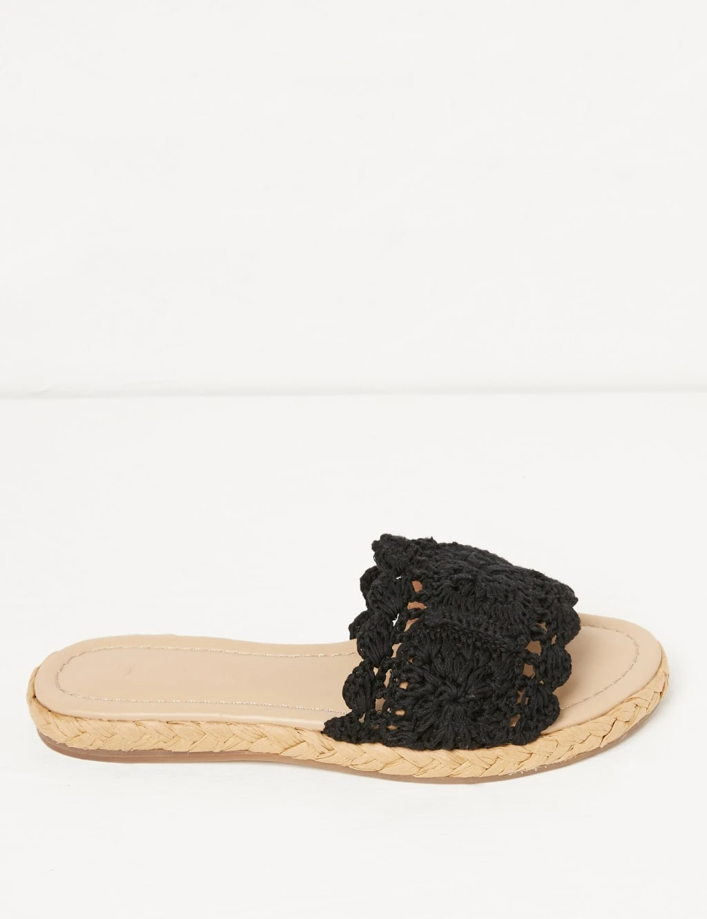 Upgrade your warm-weather outfits with these stylish sliders from FatFace. They feature a flat heel for effortless wear, crafted with plaited raffia for extra texture. The tactile upper is embroidered throughout for an eye-catching effect.