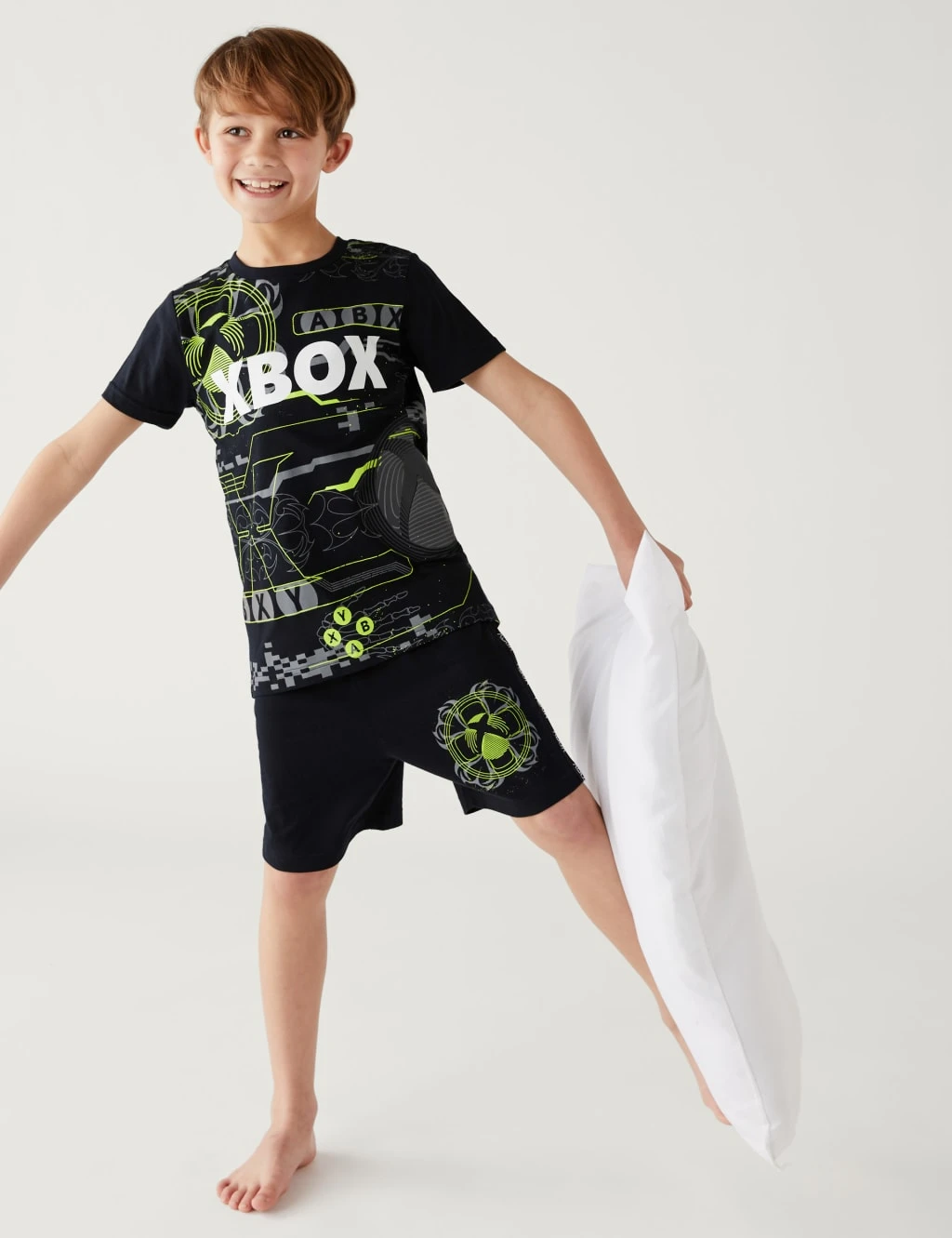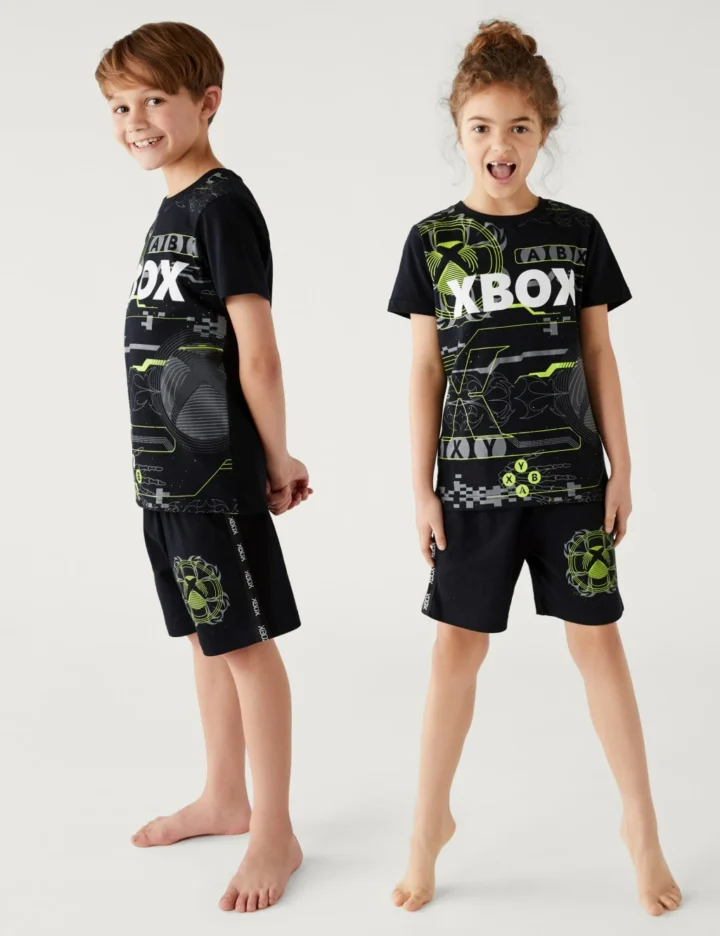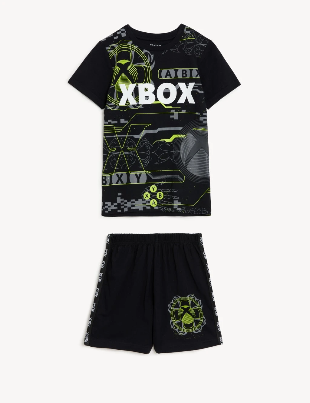 Dedicated gamers will love the Xbox™-themed print of these pure cotton pyjamas. Two-piece set includes a short-sleeved t-shirt and a pair of shorts, both in a regular fit.
